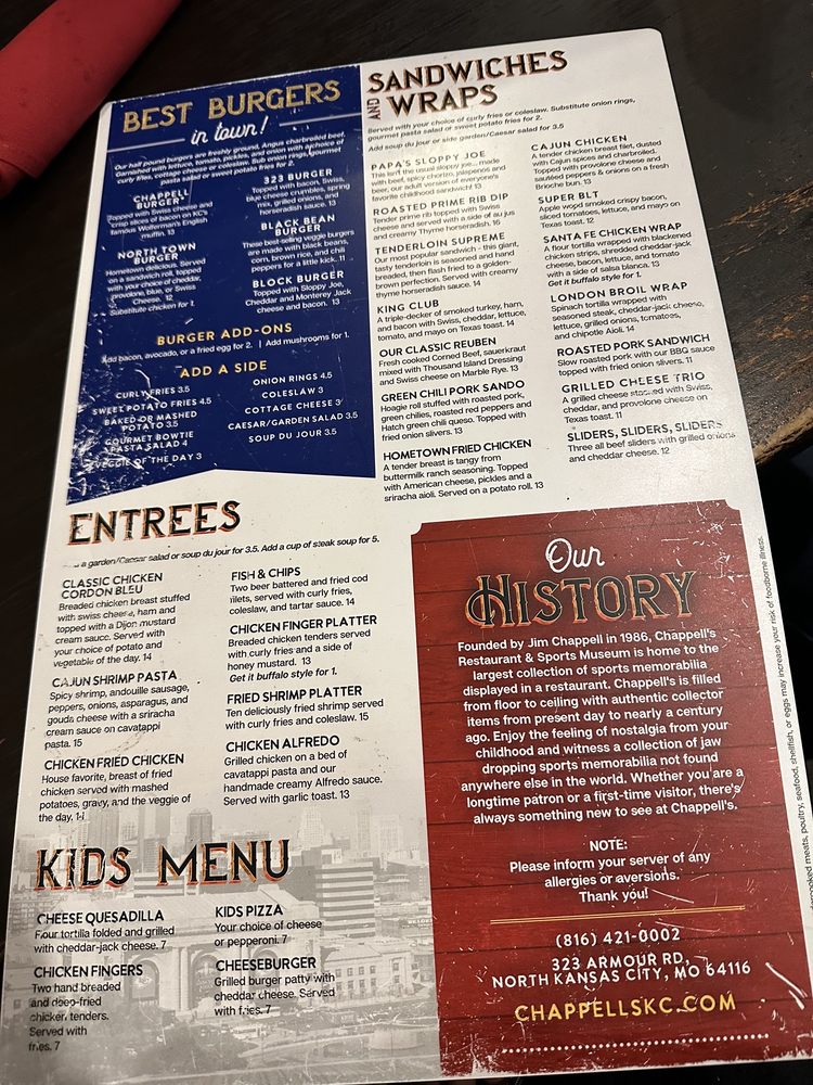 Welcome to Chappell's Restaurant & Sports Museum, where culinary delights and the thrill of sports come together in a uniquely inviting atmosphere. Nestled in the heart of Kansas City, Missouri, this vibrant establishment offers more than just your typical American fare; it immerses you in a rich tapestry of sports history while serving up some of the best burgers in town.